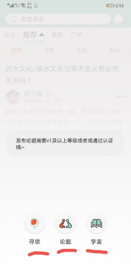 发现的问题:用户想发布新内容时出现3个选项,但是新用户并不知道这三个选项是干什么的,选项名字也不好理解。