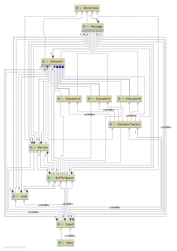 输入线程做了很多Main应该做的事,所以复杂度较高。但是我乘客线程想要判断乘坐哪个电梯必须获得所有电梯、调度、队列的信息,只有输入能完成传递的任务。所以根本上我设计的耦合度太高,还是不够面向对象。可以考虑封装全部电梯信息,并只给乘客展示其所需内容,可以一定程度上解耦。