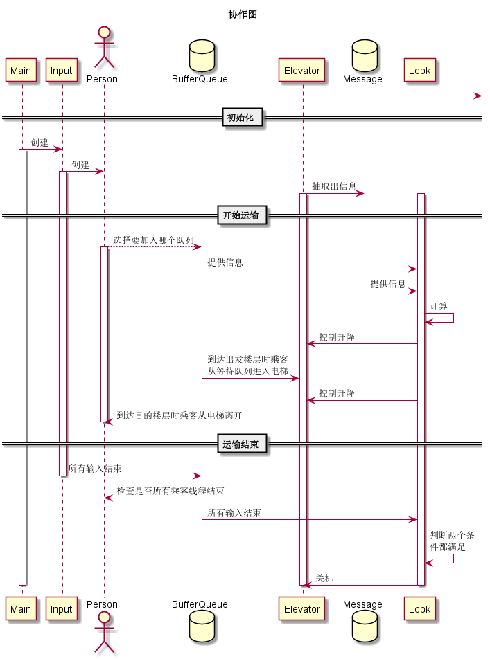 下面是协作图,限于篇幅只展现了一个乘客不换乘的情况,其余情况循环执行即可