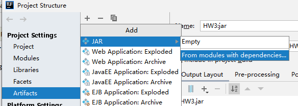 【File】-> 【Project Structure】->【Artifacts】->【+】->【JAR】->【From ...】