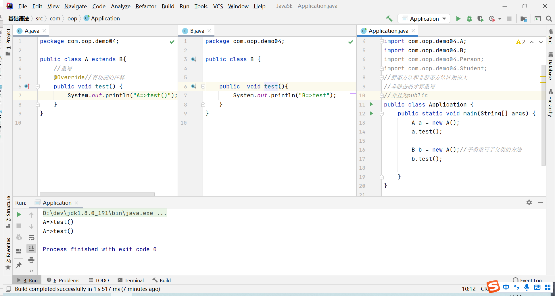 - 抽象方法必须在抽象类中,抽象类中可以写普通方法