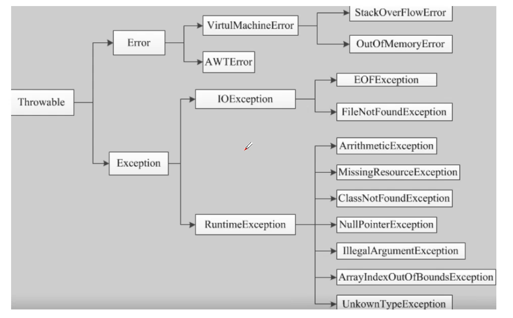 Exception:运行时异常,一般由程序逻辑错误引起的 一般可以被程序处理