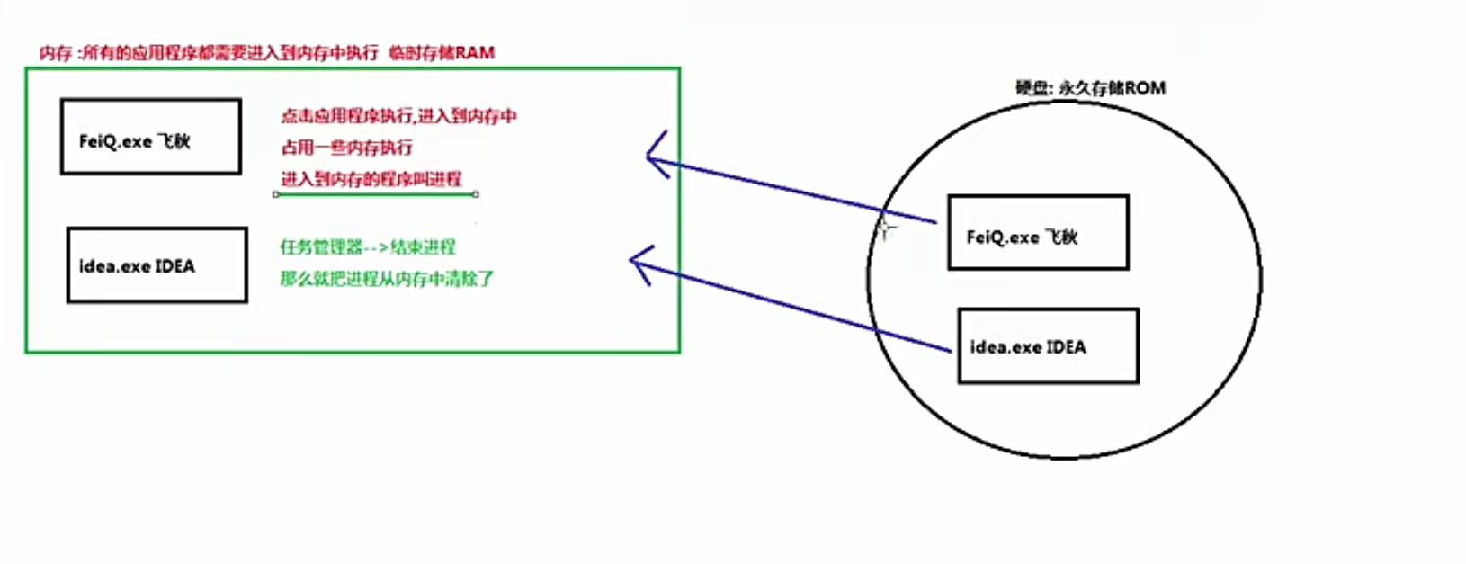 点击应用程序执行,进入到内存中,占用一些内存执行,进入到内存的程序叫做进程
