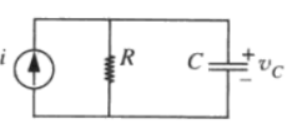 如上电路图,根据KCL,我们可以得出 \(i = C \frac{dv_c}{dt} + \frac{v_c}{R}\) 。