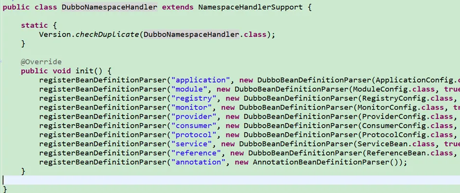 public class DubboNamespaceHandler extends NamespaceHandlerSupport {