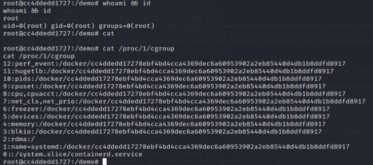 上面命令的含义进入test这个容器,当宿主机上执行exec命令来进入我们运行了脚本的容器的时候,宿主机就会反弹root权限的shell给我们的vps的监听端口,至此利用结束。