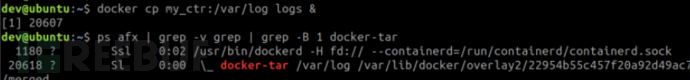 Copy命令允许从容器复制文件。把文件复制到容器外,docker需要借助一个名为docker-tar的帮助进程,docker-tar的工作原理是对文件进行chroot,将请求的文件和目录放在其中,然后将其生成的tar文件传递回Docker的守护程序,该守护程序负责将其提取到宿主机的目标目录中。