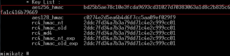 sekurlsa::pth /user:域用户名 /domain:域名 /aes256:aes256值 hash