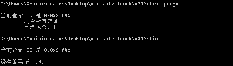 klist purge //清空当前机器中所有凭证,如果有域成员凭证会影响凭证伪造