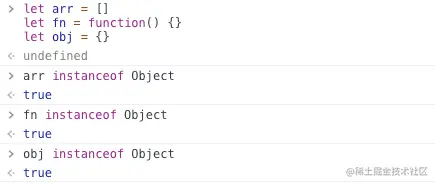 为什么fn instanceof Object和arr instanceof Object都返回true呢?我们来看一下MDN上对于instanceof运算符的描述: