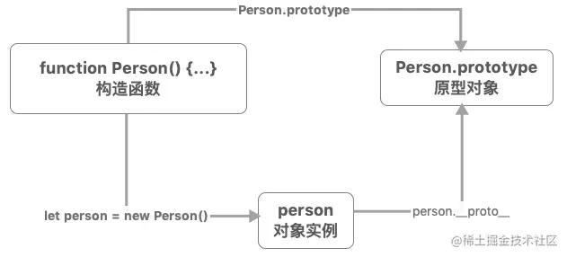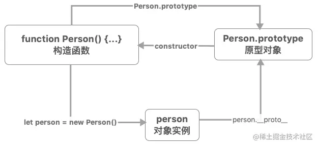 __proto__属性指向构造函数的prototype属性。 - 将构造函数调用的this指向这个新对象,并执行构造函数。