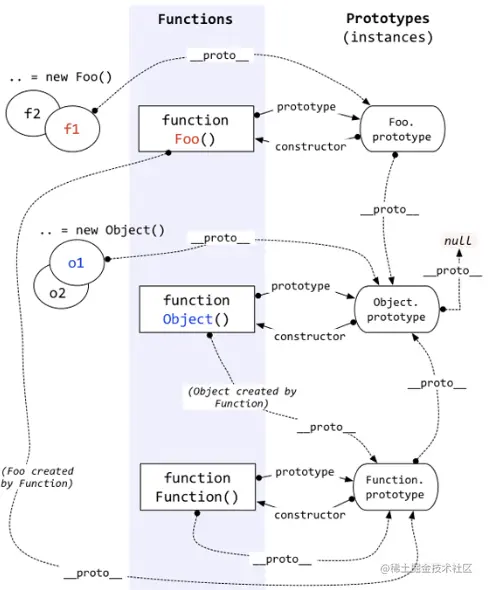// f1、f2都是通过new Foo()创建的对象,构造函数为Foo,所以有