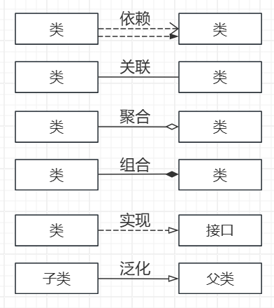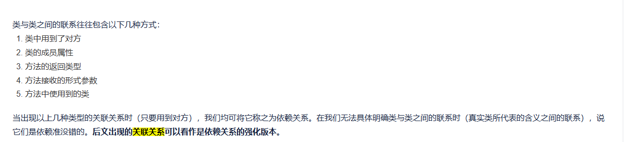 依赖和关联:a依赖b,b以方法参数的形式作为局部变量出现在a的方法中。a关联b,b作为全局变量出现在a中