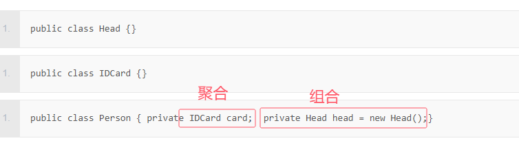 聚合和组合:聚合汽车由引擎、轮胎以及其它零件组成,因为汽车坏掉了,没有坏掉的引擎,轮胎和其他零件还可以继续使用。