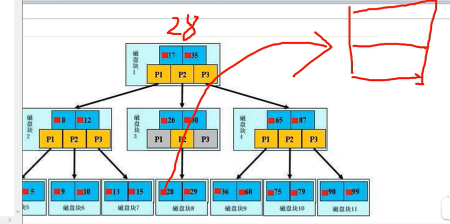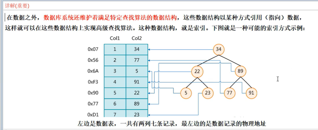 右边(二叉树)可以看做是索引的一种方式:查询第一个比大小,小了往左找,再比大小,大了往右边找,找三次就能找到。