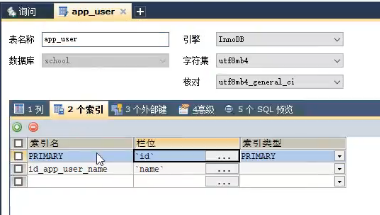 2. 创建完毕后,增加索引