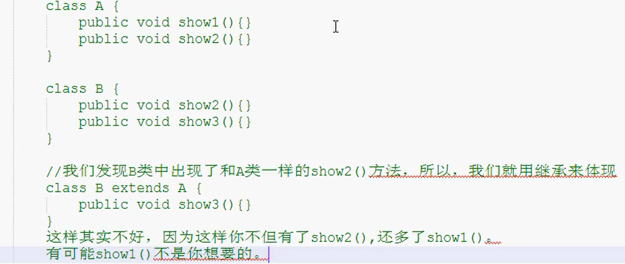 - 如果有两个类A、B,只有他们符合A是B的一种,或者B是A的一种,就可以考虑使用继承。