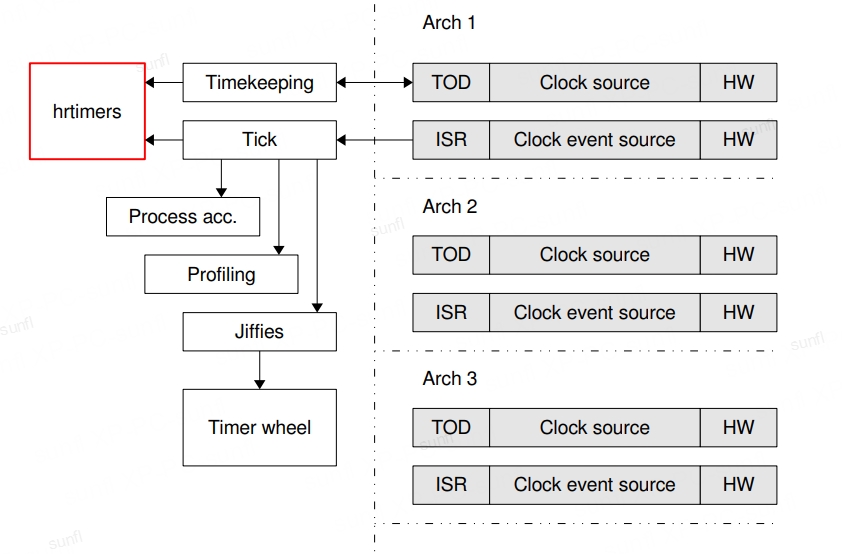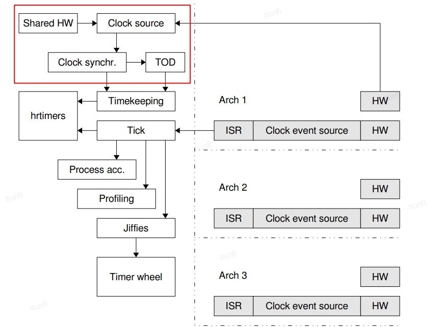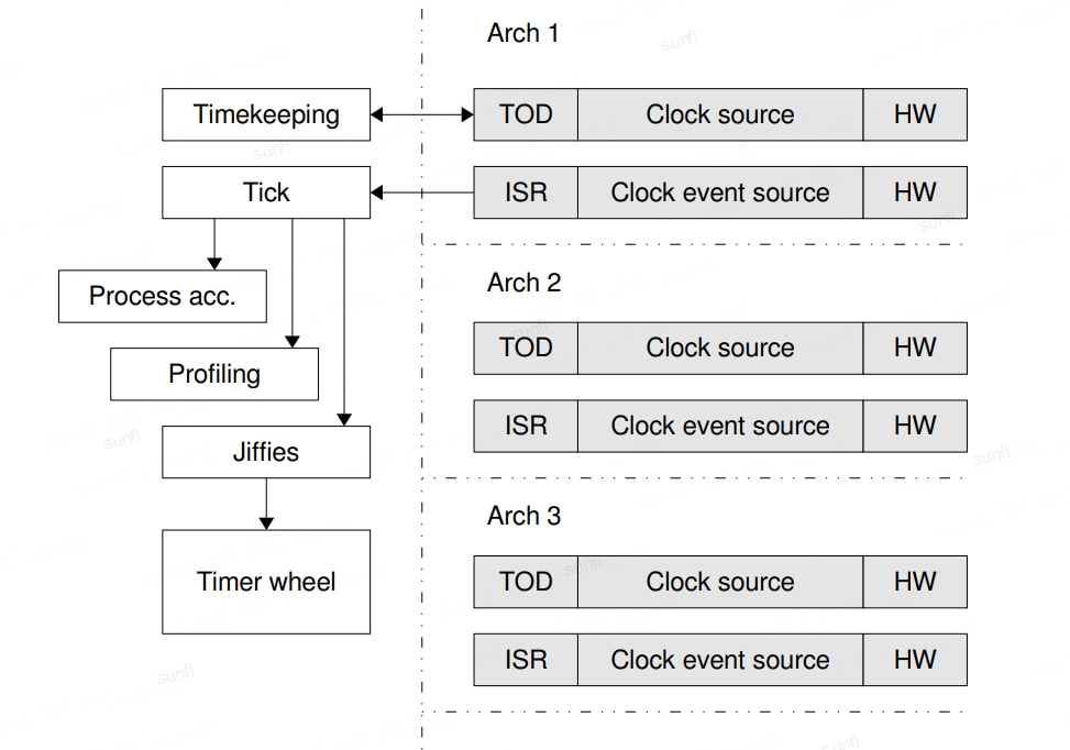 时钟源提供对单调递增时间值的读取访问,而时钟事件设备则用于调度下一个事件中断。下一个事件目前定义为周期性事件,其周期在编译时定义。各种事件驱动功能的事件设备的设置和选择都硬编码到与架构相关的代码中。这会导致所有架构的代码重复,并且很难更改系统配置以使用架构中已内置的事件中断设备以外的其他设备。当前设计的另一个含义是,为了提供新功能(例如高分辨率计时器或动态时钟节拍),必须触及所有特定于架构的实现。