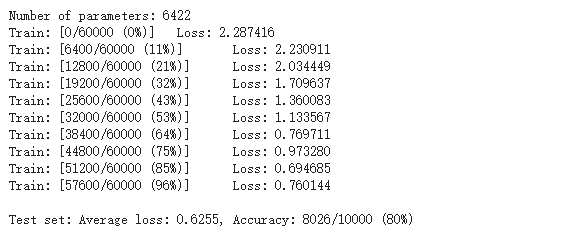 print('\nTest set: Average loss: {:.4f}, Accuracy: {}/{} ({:.0f}%)\n'.format(