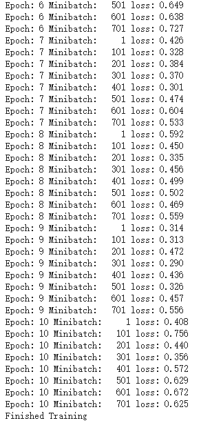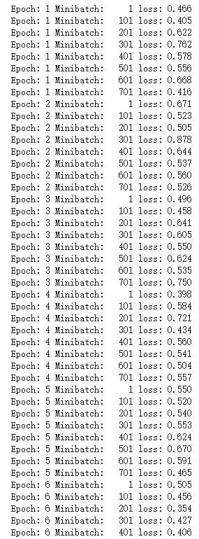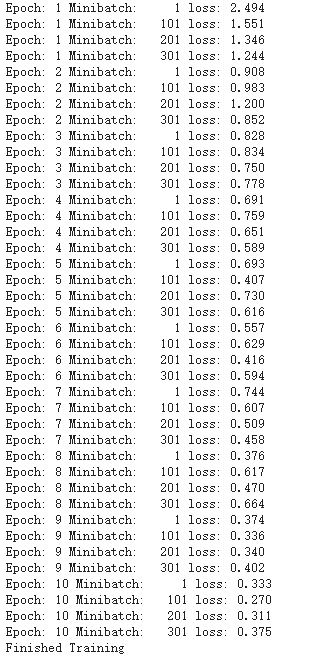 print('Epoch: %d Minibatch: %5d loss: %.3f' %(epoch + 1, i + 1, loss.item()))