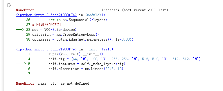 报错了,错误:(1)cfg应放在函数外部定义 (2)nn.Linear()的参数大小错误,导致图像大小不一致