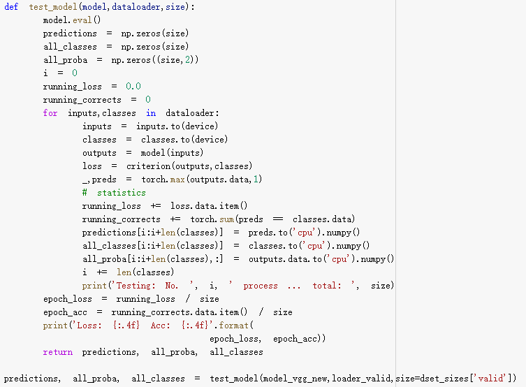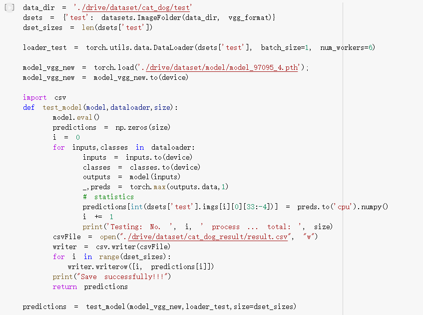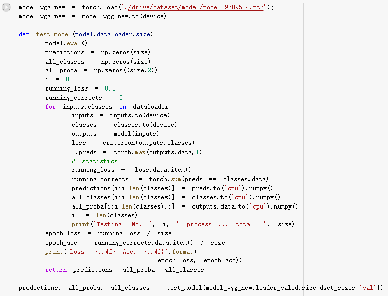 选取一个刚刚保存下来的模型,导入测试数据集进行测试: