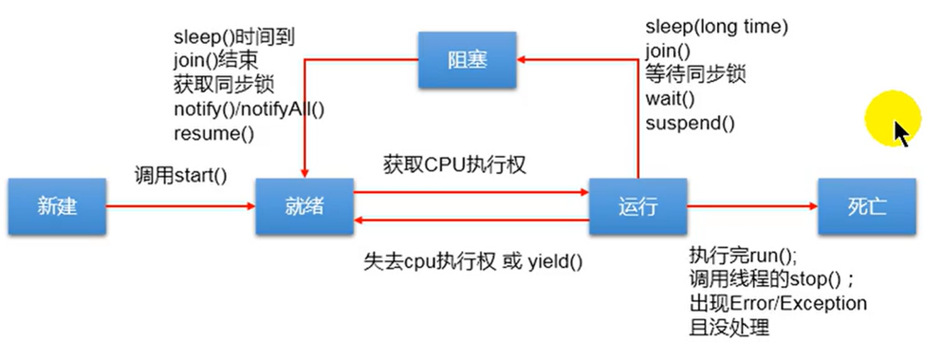 - static void sleep(long millitime):让当前线程睡眠指定的millitime毫秒,在指定毫秒时间内,当前线程时阻塞状态