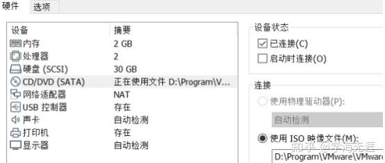 2. 然后需要在硬件选项中,添加ISO映像文件,这里选择vm安装路径下的liunx.iso。