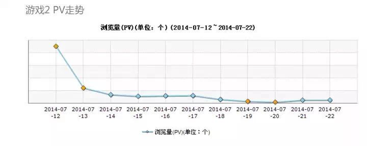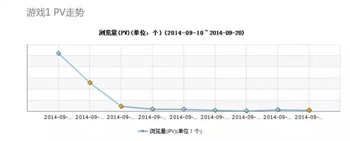 手机页面上线推广第一天是访问顶峰,第三天后的数据趋于平稳,访问较低,可见下面2个例子。有其他资源推送(例如PC官网固定位置放置二维码)的专题走势不一样。