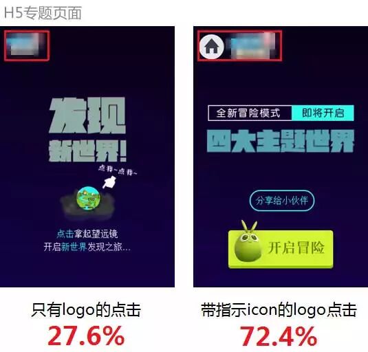 PC页面用户有点击左上角logo返回首页的习惯,手机页面的操作习惯可能会受logo设计影响。几个专题发现,用户对单纯的logo点击欲望不大,但是添加了返回或者其他标识的logo,点击率会增加。