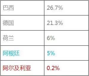 巴西世界杯期间,最受关注的两个国家巴西和德国的用户选择占所有国家选择的48%。而摆放位置差不多的阿根廷和阿尔及利亚,关注度相差25倍。