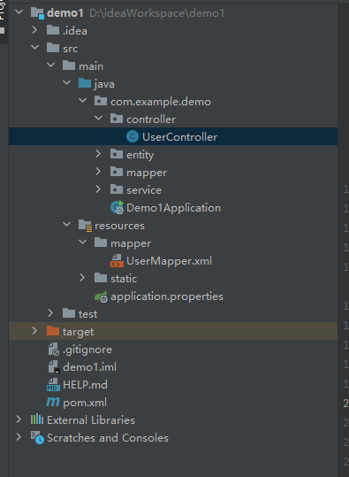 编写对应的mapper接口文件(com/example/demo/mapper/UserMapper.java)