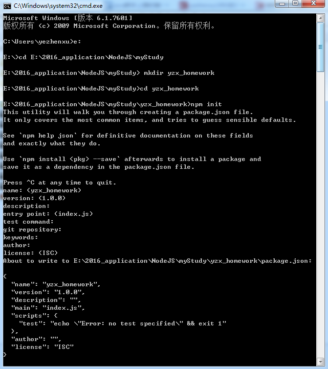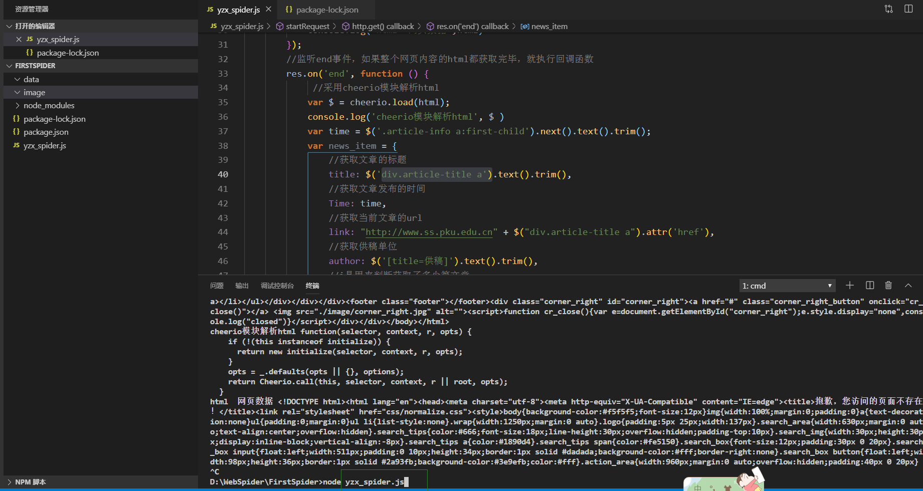 11. cd 到你创建工程文件夹yzx_homework下,然后 node yzx_spider.js