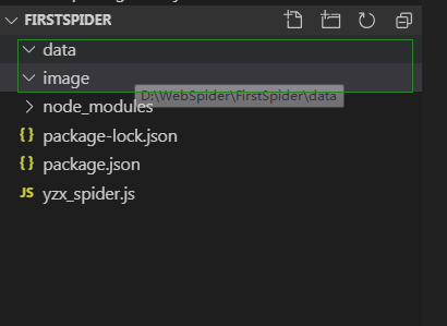 9.如果想要将爬取的数据和图片分类放好,那就事先建立一个data和image文件夹准备着。(在FirstSpider文件夹下新建。)