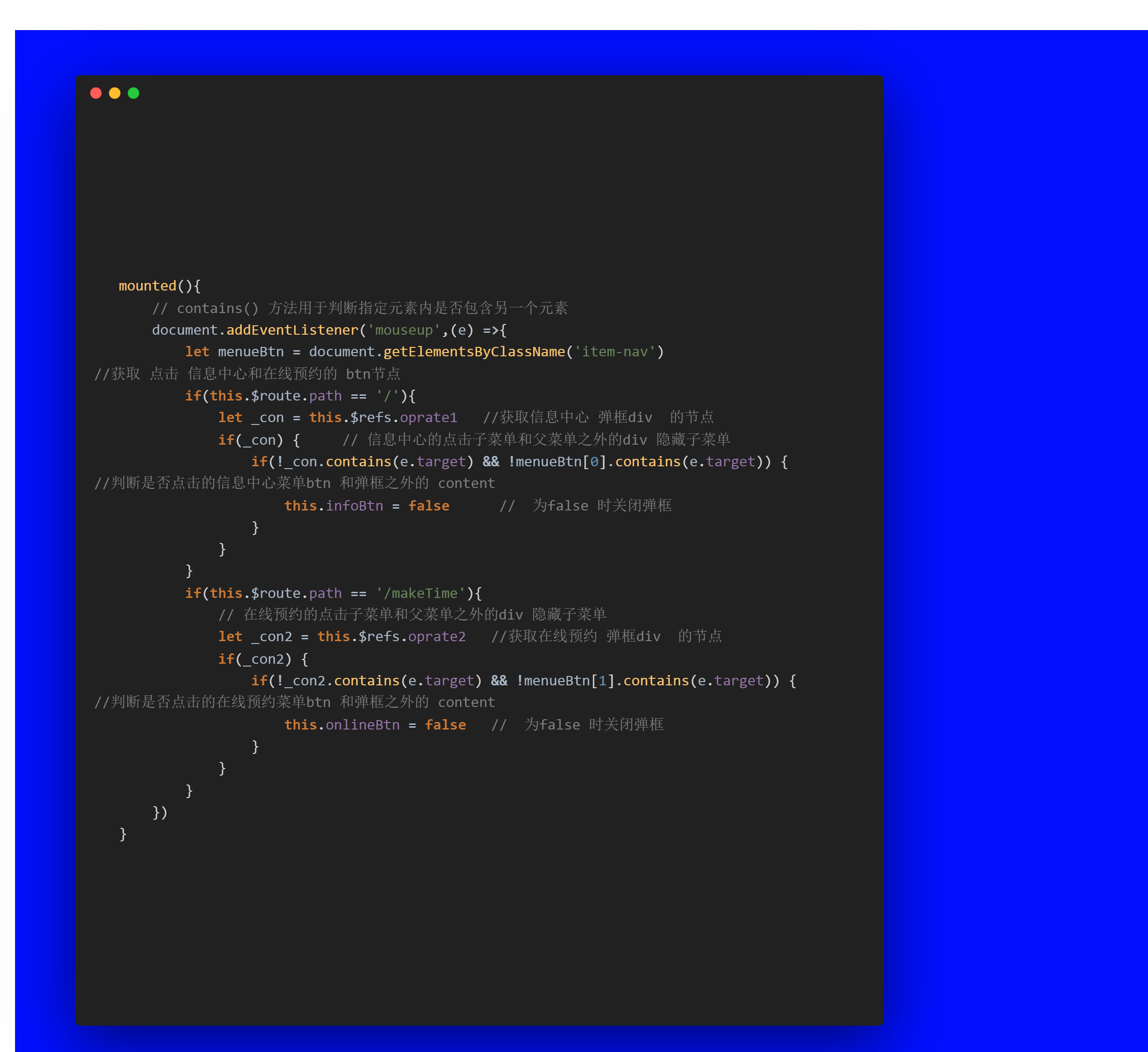 let menueBtn = document.getElementsByClassName('item-nav') //获取 点击 信息中心和在线预约的 btn节点