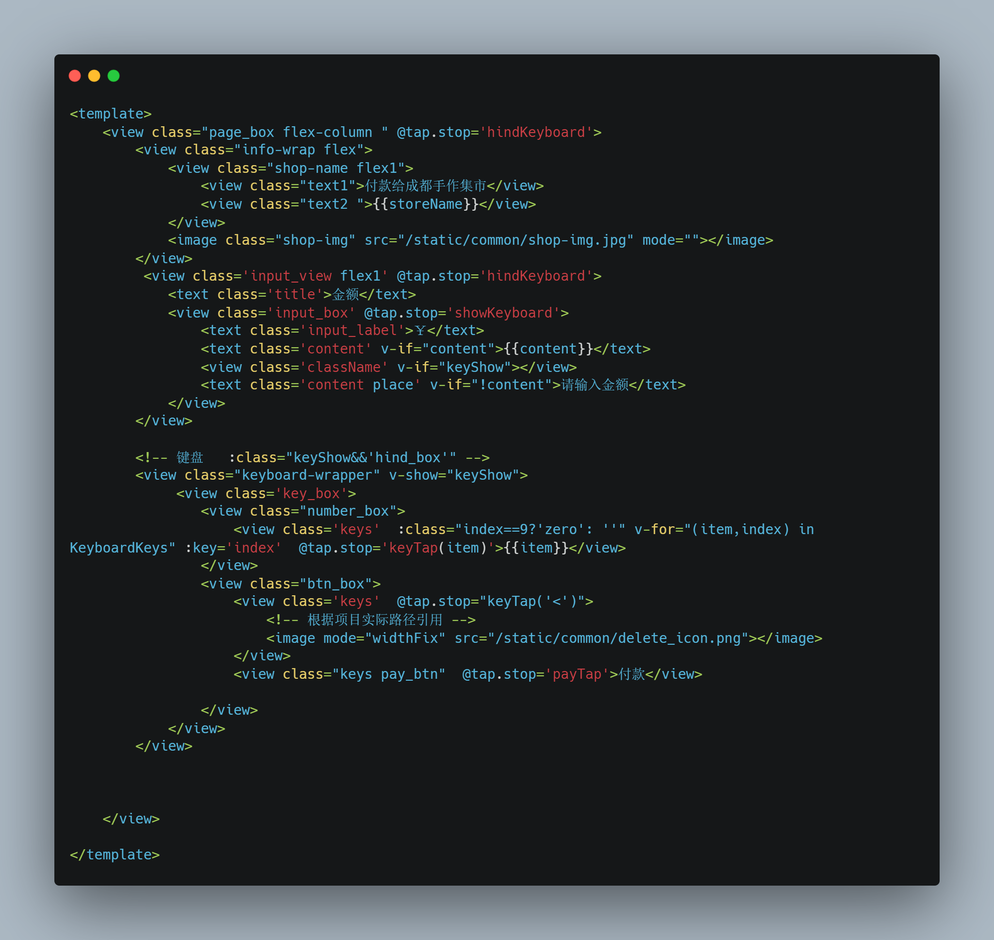<view class='keys' :class="index==9?'zero': ''" v-for="(item,index) in KeyboardKeys" :key='index' @tap.stop='keyTap(item)'>{{item}}</view>