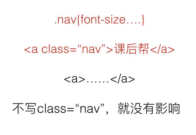 虽然写了a标签,但是我没有给这个a标签指定class="nav",那就没有收到影响。 其实还是非常好理解的,有就影响,没有它不知道,所以就不会有影响。