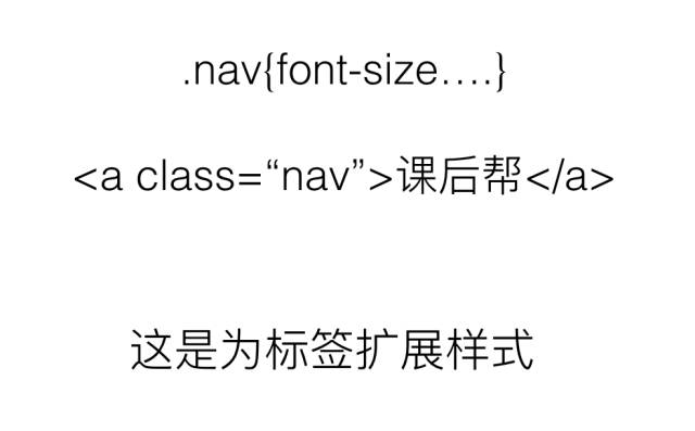 首先要在style标签里写一个.nav+花括号{},然后在具体的某一个标签上写一个class="nav",这个东西是什么呢?实际上就是对标签样式的一种扩展, 从写法上也能看的出来,相当于为这个标签附加了一个东西,这个就是标签扩展样式。那我们来对比一下扩展标签和初始化标签样式的不同。