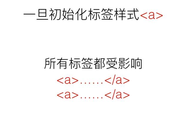 但初始化就不同了,就是一旦我们初始化了一个标签的样式,比如说a标签,那么在你整个html文件中所有的a标签都会收到影响。这个呢也就是所谓的区别。