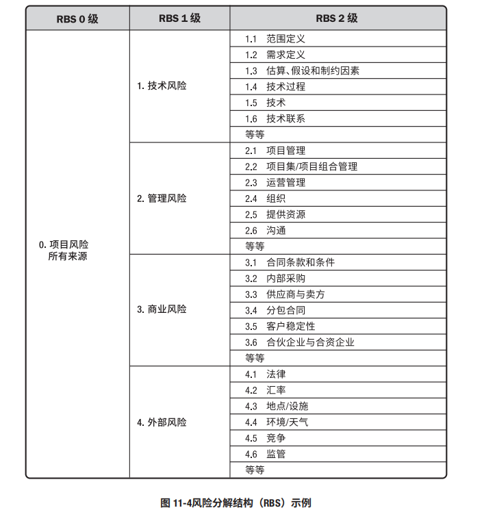 风险分解结构是潜在风险来源的层级展现(示例见图 11-4)。