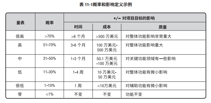 项目可能自行制定关于概率和影响级别的具体定义,或者用组织提供的通用定义作为出发点。