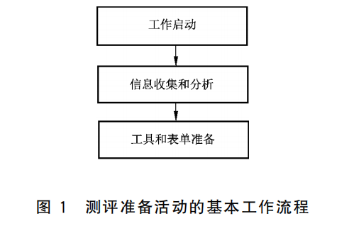 测评准备活动包括工作启动、信息收集和分析、工具和表单准备三项主要任务。这三项任务的基本工作流程见图1: