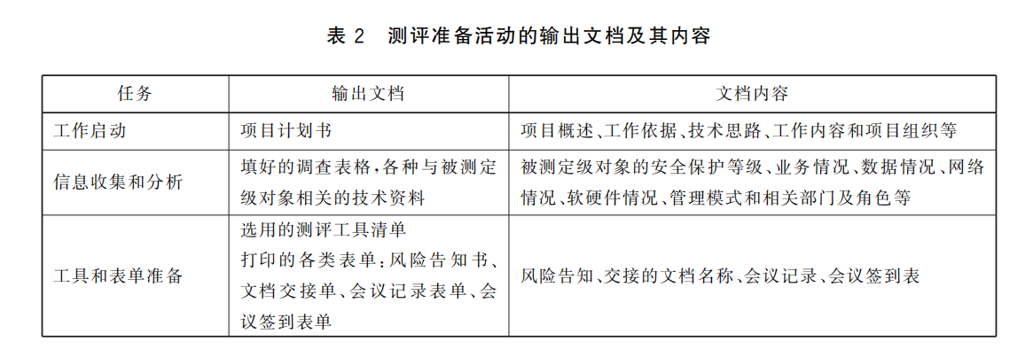- 输入:项目计划书,系统调查表格,被测定级对象相关资料。