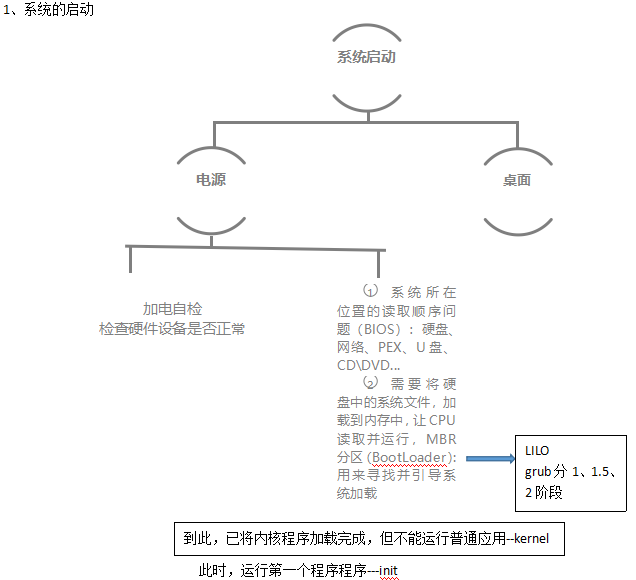 Init:将操作系统分为0-6、7个级别;每个级别都会运行对应的应用程序