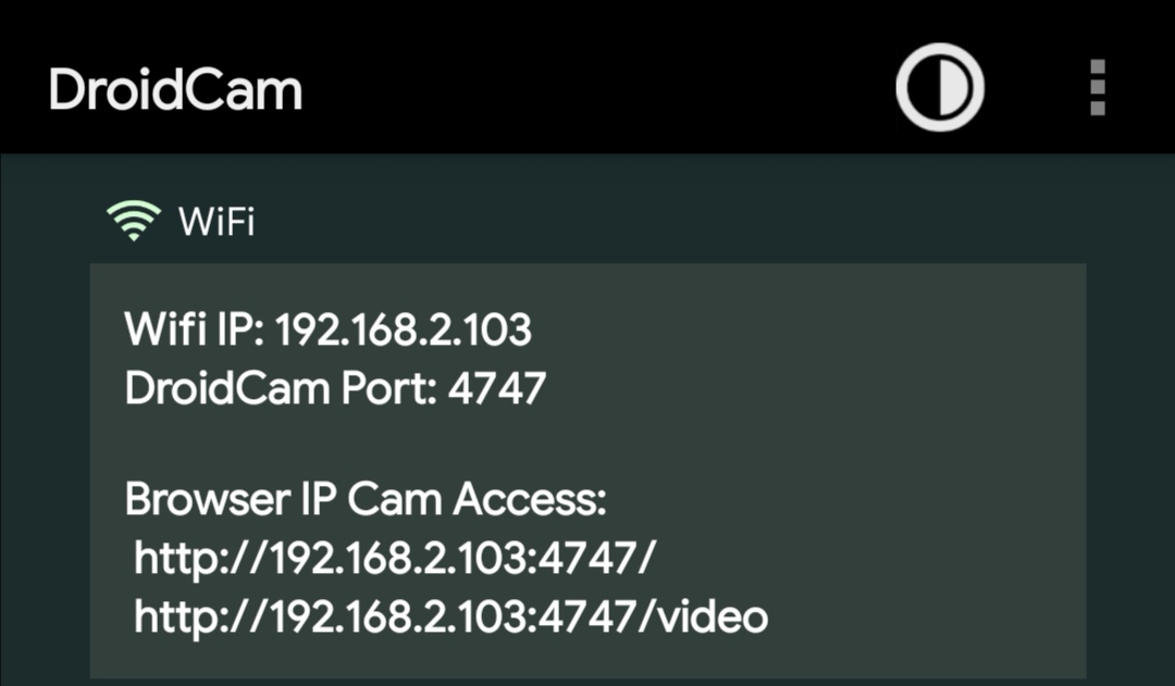 app准备:DroidCam (下载地址:https://www.dev47apps.com/)