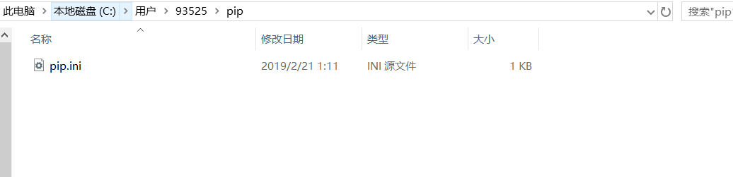- 新建pip配置文件夹,直接在user用户目录中创建一个名为 pip的文件夹( 即%HOMEPATH%\pip),如下图所