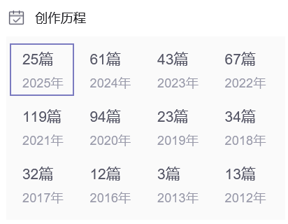 说回正题,今年一共写了 26 篇原创(有一篇还没同步到下图 CSDN 创作历程上),这个产量说实话有点惭愧,个人因素居多,但也跟整个行业公众号文章打开率滑坡严重有关(是不是因为 AI 给的答案更直接?),大V们都无法保证阅读量了,创作者当流量主赚点广告费的时代已经过去了。据说公众号官方正在试行创作者花钱给自己文章做流量推广机制(所谓加热),你们说这日子还怎么过!!!