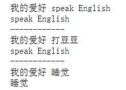hobby = "speak English" # 全局变量 def my_hobby(): print("我的爱好",hobby) my_hobby() print(hobby) print("------------") def my_hobby(): hobby = "打豆豆" # 局部变量 print("我的爱好",hobby) my_hobby() # 函数里面的打豆豆 print(hobby) # 还是speak English print("------------") def my_hobby(): global hobby # global 后变成全局变量,作用域所有程序 hobby = "睡觉" print("我的爱好",hobby) my_hobby() print(hobby)