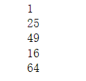 1 res = map(lambda x:x**2,[1,5,7,4,8]) 2 for i in res: 3 print(i)